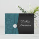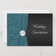 Denna dramatiska teal- och svarta blomdamaskmönstrade vigselinbjudan med tryckt band och juvelprydd medaljong med monogram visas här på vanligt papper. Den kan också användas för flera andra speciella tillfällen genom att ta bort den främre texten med hjälp av "rensa"-funktionen i personaliseringssektionen. Text- och pappervalen är helt anpassningsbara. Om du behöver matchande artiklar, vänligen maila din förfrågan till niteowlstudio@gmail.com.