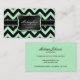 Härlig pastellgrönt och mönster för svartsparresicksack och ett metalliskt band för silver. Salong- och Spavisitkortar.
