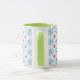 En vacker vit Ringer Mugg med Grönt Lip and Handle och mönster i Vatten Lilies, från en handmålad papper kollage av Judy Adamson. Utmärkt gåva till någon med en Julfödelsedag, en del av Posh & Painterly 'Lily Pond'-samlingen.