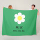 grönt och vit daisy, enkel, modern monogram söt fleecefilt