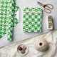 En papper förpackning byggt med en grönt och vit schaktad mönster med hjärtan på stor storlek. Anpassa den vita bakgrunden färg bland flera alternativ.
