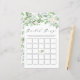 Förhöj din bröllopsfest med detta grönska bröllopsbingospel. Med akvarellsgrönska och mjuka vita blommor är detta bröllopsbingokort perfekt för att skapa en lekfull stämning på din fest. Perfekt för vår- och vinterbröllopsfester, trädgårdsinspirerade fester eller rustika bröllop.