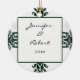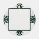 Denna prydnad har en bakgrund som är en ljus vit med fyra gröna damastast mönster på varje sida och en nätt silver bleknad blom- design. Mycket nätt och elegantt. I centrera är ett ställe för din foto eller logotyp som inramas med ett enkelt svart musikband. En underbar långt som minns ditt speciella tillfälle eller som semestrar.