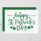 Sprid lite irländskt jublande åt St. Patrick's Day med den här roligten och det festkort som säger "lycklig St patrick's day" i ett dekorativt skript för roligt grönt med hjärtaccenter och schampon. Anpassa genom att anpassa meddelandet på baksidan och/eller lägga till ditt/dina namn.