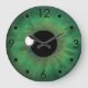 Grönt Öga Iris © Sunny Mars Design. Coola, anpassningsbar med roligt tryckt grönt ögoneball stor storlek rundklocka med ett trendig, modernt, vackert, unikt, fräckt, läcker, konstig och vriden grafik som illustrerar en träffande stor grönt realistisk ögoniris av en öga. Om du vill se alla färg öga och ögonkorgarna klickar du på bilden nedan: