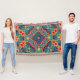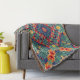 Filt med grönt, orange, blått och gult abstrakt tropiska mönster