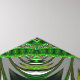 Andlig sol inspirerade till den geometriska mandalatabilden i färg av ljusa till duskiga skuggor av grönt med guld med den sanskritsymbol som representerar sol och fred med golden Om (Aum). Nya åldern Feng Shui Zen Art för hem och kontor. Symptomområde för yogasrum och yogasrum. Som min design och konst?