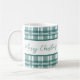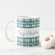 Fint kaffe mugg med God jul i modern kalligrafi med grönt i bakgrunden. Matchande objekt i vår butik.