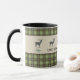 Sparar ditt morgonkaffe i ditt sura hem eller semesterstuga med den här grönten och grått plaid mönster mugg. Grönt och grått, accentuerade med ljusblå och en hjort silhuett. Redigera textbildtexten efter behov och sök efter andra koordinerande element i den här designsamlingen på Camp_and_Cottage på Zazzle.com.