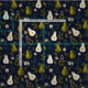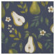 Detta mönster visar vackert handmålade akvarellpäron i frodiga gröna toner, omgivna av flödande blad och subtila blomdetaljer. Den djupa marinblå bakgrunden förstärker konstverkets livfullhet och skapar en sofistikerad botanisk design som känns både organisk och tidlös.