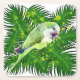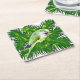 Grönt parrot och handflatan löv vattenfärg underlägg papper kvadrat