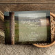Inbjudan gäster till en församling i giftermål för att hedra bruden och brudgummen med den naturliga och rustiska Grönten Farm Pastures Landsbyggsbröllop Rehearsal Dinner Inbjudan. Den här avslappnaden, som ändå är klassad som anpassningsbar, är en inbjudan på gården i party, med ett scenformat stil på landsbygden, där en grönt är fylld med gräs, häckbalar och ett trästängsel med taggtråd. Inspektion i perfekt för en informell händelse i party firande.