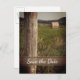 Ange en avslappnad-ton för kommande nuptialer från stil i ranch med den charmerande Grönten Pastures Land Ranch Bröllop spara datum Postcard. Denna naturliga behålla på landsbygden i giftermål innehåller datumannonskortet ett fyrkantigt lantbruksfoto av en grönt med hö-rullar i avstånd och en taggtråd av trä i förgrunden. Perfekt för en informell ceremoni och mottagning i party giftermål.