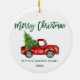 Penselskript Vattenfärgsfärgad Vintage Red Lastbil med Julgran - God jul