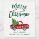Penselskript Vattenfärgsfärgsetikett Vintage Red Lastbil med etiketten Julgran - Vin Flaska