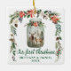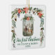 Elegant Calligraphy Script, vår Hjort för Blommigten för första julfärgsfärger på vintern Ornament innehåller röda pekare, rosor för vit blommigt, gräs-koner, bomull och vintergröna. Vattenfärgen Mason burk med hjort och bock i gräs skog. Foto tillbaka.