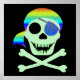 Ljust grönt skallar och korsben med mörk blått ögonepatch och ljusa regnbåge. Enkel, färglös pirat-skalldesign för Halloween eller när som helst. Bakgrunden och gräns färg är anpassade.