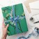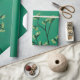 Gröntens inslagning papper med ett minimalistiskt konstverk med elegantens blommigt digital målning av en blommande örtartade växt över mörk grönt bakgrund som påminner om vår.