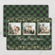 Elegant grönt buffalo visar God jul-kort för fotokollage. Anpassa enkelt den här grönten med ett bildskärmskort med dina foton och familjen namn.