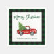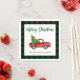 Penselskript Vattenfärgsfärgad Vintage Red Lastbil med Julgran Pappersservett - Grönt Play