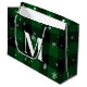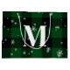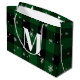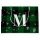 Den här presentsäcken för festlig anpassningsbar har en rustik vinterdesign. Bakgrunden till detta är en grönt som är känd mönster med fallande snöflingor. Ett exempel på ett monogram skrivs ut mitt i kudden som du kan anpassa för att inkludera din egen anpassningsbar eller annan text.