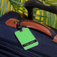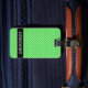 Denna bagagemärkredesign presenterar gälla för mönster som är många grönt, pricker/cirklar. Den presenterar också ett personlignamn på bekläda, och personligkontakten specificerar på baksidaen.