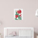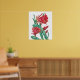Detta är en botanisk illustration av vintagen av en grönt med röda blommor på vit bakgrund.