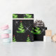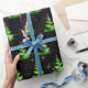 Contemporary grönt band Julgranar med röda stjärnor och vita twinkling-gnistor på svart. Bakgrunden till färg kan ändras.
