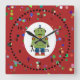 Grönt Robot Wall Clock Fyrkantig Klocka