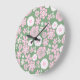 Grönt Rosa White Retro Y2K 70 s Flower Mönster Stor Klocka