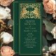 Luta magin i din stora dag! Dessa medeltida fantasi-bröllopsprogram har en regal lejon omgiven av invecklade guld-blommigtar och ett monogram mot en grönt bakgrund, som blandar elegans med en gnutta storhet. En perfekt för din saga firande! Den guld som finns på den här posten är INTE äkta och trycks i platt färg.