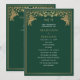 Luta magin i din stora dag! Dessa medeltida fantasi-bröllopsprogram har en regal lejon omgiven av invecklade guld-blommigtar och ett monogram mot en grönt bakgrund, som blandar elegans med en gnutta storhet. En perfekt för din saga firande! Den guld som finns på den här posten är INTE äkta och trycks i platt färg.