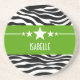 Trendig och modern Sassy Star Zebra Sandstone Underlägg med en chic svart och vit zebra tryck-bakgrund och en fetstilt chartreuse grönt gräns, försedd med roligtens stjärnmotiv. Den här giftiga designen kan anpassas med den personlig du väljer. Klicka på Anpassa om du vill söka efter fler anpassningsalternativ.