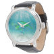 En utrotningshotad havssköldpadda som simmar under vatten och som målas i havsblues och gröntar med luft-bubblor som flyter mot yta.