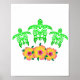 Tre hawaiiska honu-grönt-havssköldpaddor över tropiska hibiscus-blommor, underbara som en hawaiisk souvenir eller för vem som helst som kärlek-sköldpaddor.