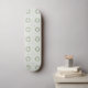 En serendesign som visar blommar med lager och mjuk grönt i fullt-blomning. Dessa ömtåliga blommigtar ställs på ett vackert sätt mot en skarp bakgrund av det geometriska mönstren i vitt och mjukt grått, vilket skapar en harmonisk och fredlig sammansättning.