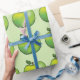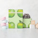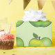 Desteis serieillustration av ett grönt äpple som mönster. Bakgrundsfärgen är grön.