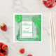 I naporna från grönt stil i bröllop finns en illustration av vackra blommor av grönt med ram av trä som centrum av teckning. I ram finns parets namn. Anpassa din idag! Napkin Design: WedingsbyRhoadie Blommigt art: Oberholster Venita