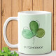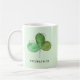 Denna moderna grönt kaffe mugg är dekorerad med en handdragen vattenfärgsschamprock. Perfekt för St patrick's day eller vilken dag som helst för att fira ert irländska arv. Enkelt anpassade. Ursprunglig vattenfärg © Michele Davies.