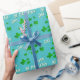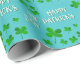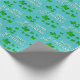 Grönt Shamrock Klöver Lycklig St. Patrick's Day Wrapping Papper. En Lycklig St. Patrick's Day-text med grönt Irish schack för tur. Klöver har fyra löv. Bakgrunden är blå. Du kan ändra texten.