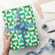 Grönt Shamrock Klöver på Checkerboard Irish Party Wrapping Papper. Grönten färg är något ojämn, det är en del av designen, inte ett utskriftsfel.