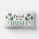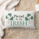 En chic, patriotisk Lumbar Pillow med grönt Shamrock lövs och Proud to be Irish i keltiska skript, på en vit bakgrund som du kan ändra om du vill (Orange är ett bra alternativ). Den omvända sidan är ett dilatöst Shamrocks mönster, en del av "Shamrocks"-samlingen Posh & Painterly.