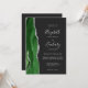 Den lämnat kant i eleganten i den moderna bröllopsinbjudan har en grönt vattenfärgsagat gräns som trimmas med faux silver glitter. Anpassadet kombinerar handskrift, tryckplåt och kursivt typsnitt i ljust silver-grått mot svart bakgrund. På baksidan finns utrymme för information om bröllop på en solid mörk-bakgrund, tillsammans med en QR-kodgäst som kan söka på webbplatsen och OSAN, vilket sparar kostnaderna för utskrift och utskick av separat OSA kort.