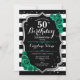 Grönt Silver Black 50:e födelsedagen Inbjudningar
