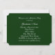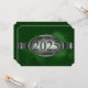 Knappens omgivande blommigt ovanpå ett menyfliksområde i silver som har blommigt. Gröntens grumliga bakgrund. Kortets baksida har en grönt med vit text för studentfestens inbjudningar.