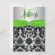 Denna elegant och moderna limefruktgrönt, silvergrått och svart damastast sweet sixteenpartyinbjudan har som SKRIVS UT PÅ ljust - den gröna band- och juvelbroschen på den. Om du kräver några matcha objekt, eller om du skulle något liknande det i en annan färgkombination, eller formaterat för en annan händelse, e-posten niteowlstudio@gmail.com med din förfrågan.