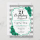 21:a födelsedagsbjudan. blommigt av elegant framträder genom grönt med ro. Funktioner för faux glitter silver och white rand och skript. Perfekt för en snyggt kvinnor i firande. Kan anpassas för vilken ålder som helst! Skrivna Zazzle-inbjudningar eller digital utskrivbar mall för omedelbar nedladdning.