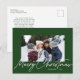 Grönt Simple God jul Calligraphy Photo Helgdag Postcard har ett modernt calligraphy hälsning över ett foto, med extra utrymme på baksidan för ditt meddelande.