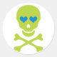 Grönt Skullben och Heart Ögon Runt Klistermärke