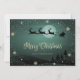 Ett vackert julkort i grönt med Jultomten och renar, snöflingor, stjärnor och fallande snö på framsidan och snöflingor och stjärnor på baksidan. Anpassa enkelt det här julkortet i grönt med din familj namn och text.